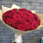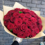 На фото букет из 31 красной розы. В составе: роза 31 шт, крафт-бумага 1 шт, атласная лента 1 шт, . Все цветы свежие и ароматные, букет красиво оформлен и отлично подходит для подарка. Доступна доставка цветов или самовывоз.