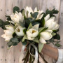 На фото свадебный букет из лотосов. В составе: лотос 15 шт, эвкалипт 9 шт, атласная лента 1 шт, . Все цветы свежие и ароматные, букет красиво оформлен и отлично подходит для подарка. Доступна доставка цветов или самовывоз.